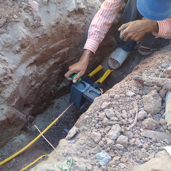 - Đổ xi măng hoặc đất lại vào hai lỗ, chèn chặt cọc tiếp địa.